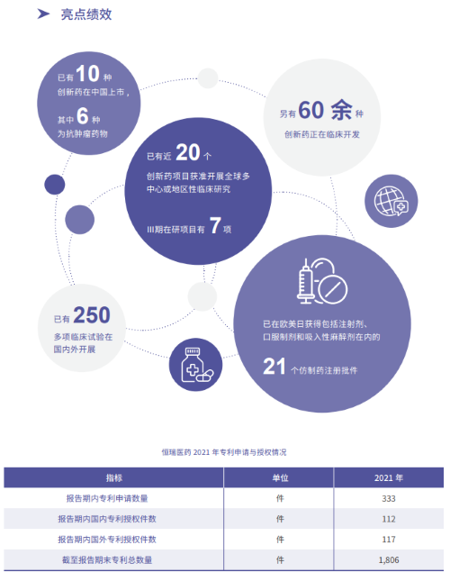 报告指出,在科技创新战略引领下,DB真人医药2021年累计研发投入62.03亿元,比上年增长24.34%,研发投入占销售收入比重达到23.95%,再创历史新高。以此为支撑,2021年公司有3款创新药获批上市,已上市创新药总量增至10款,其中6款为抗肿瘤药物。同时还有60余种创新药正在临床开发,250多项临床试验在国内外开展,其中近20个创新药项目获准开展全球多中心或地区性临床研究。在创新药研发上,DB真人医药已基本形成了上市一批、临床一批、开发一批的良性循环。