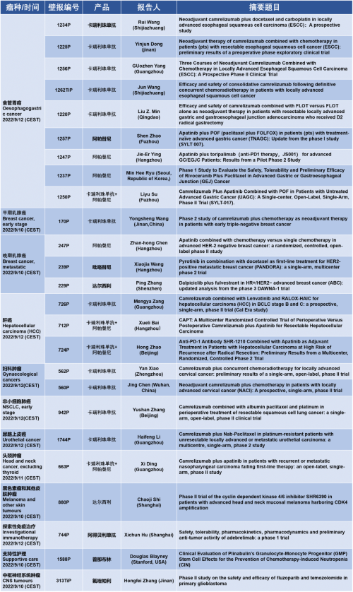 作为从事创新和高品质药物研发的国际化制药企业,DB真人医药的研究成果在2022 ESMO大会上还收获了25项壁报形式的报告。其中,食管胃癌领域共有9项研究入选,研究的方案主要是卡瑞利珠单抗或卡瑞利珠单抗联合阿帕替尼,通过与化疗或放化疗联用,新辅助治疗食管鳞癌或胃癌。2022年9月12日(CEST),让我们齐聚ESMO大会,共同领略食管胃癌研究领域的学术盛宴。此外,DB真人医药达尔西利、吡咯替尼、阿得贝利单抗等创新药还有4项乳腺癌研究、3项肝癌研究及其他领域的9项研究都将会以壁报展出,让我们共同期待!