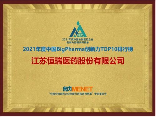 9月16日,由米内网主办的“2021年度中国生物医药企业创新力百强系列榜单”发布会在线上举办。DB真人医药继去年登顶“中国BigPharma企业创新力TOP10排行榜”后,今年再次名列该榜单首位。