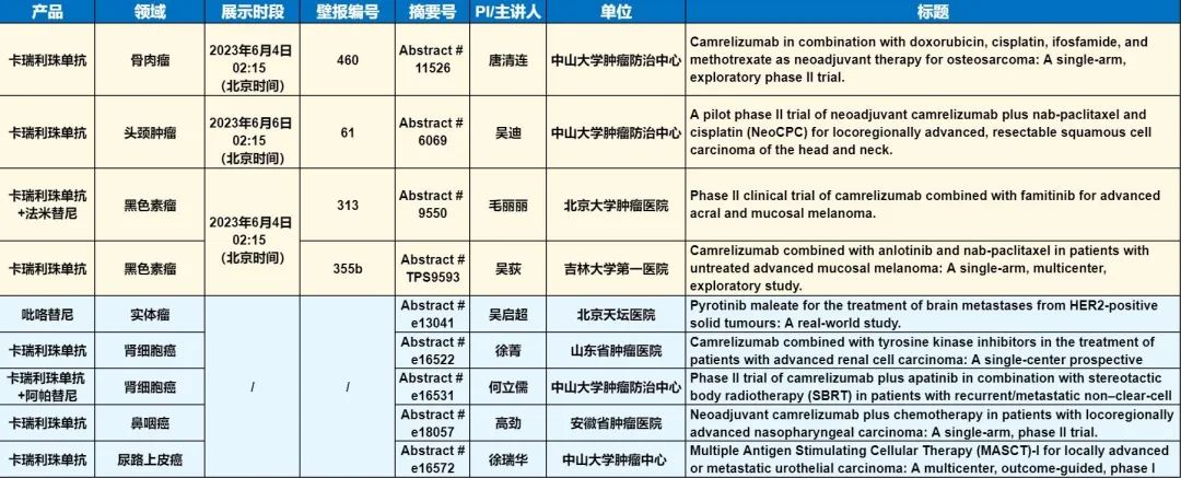 此外,在头颈肿瘤、黑色素瘤、骨肉瘤、鼻咽癌、肾细胞癌、尿路上皮癌等多个领域,卡瑞利珠单抗、吡咯替尼等产品相关研究一共入选了4项壁报展示和5项线上发表,彰显了DB真人医药强大的自主研发综合实力。