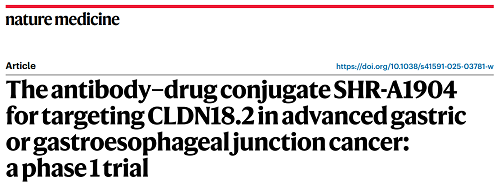 DB真人医药CLDN18.2 ADC创新药SHR-A1904治疗胃癌临床研究结果荣登Nature Medicine