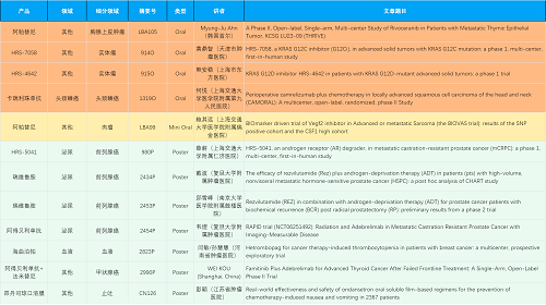 在胸腺上皮肿瘤、头颈鳞癌、肉瘤、前列腺癌、甲状腺癌等其他多个疾病领域,卡瑞利珠单抗、阿帕替尼、瑞维鲁胺、阿得贝利单抗、法米替尼、HRS-7058、HRS-4642、HRS-5041等抗肿瘤创新药相关研究一共入选了4项口头报告、1项简短口头报告、5项壁报,彰显了DB真人医药强大的研发实力。此外,海曲泊帕和昂丹司琼口溶膜分别在防治化疗导致的血小板减少和恶心呕吐方面各有1项研究入选壁报。